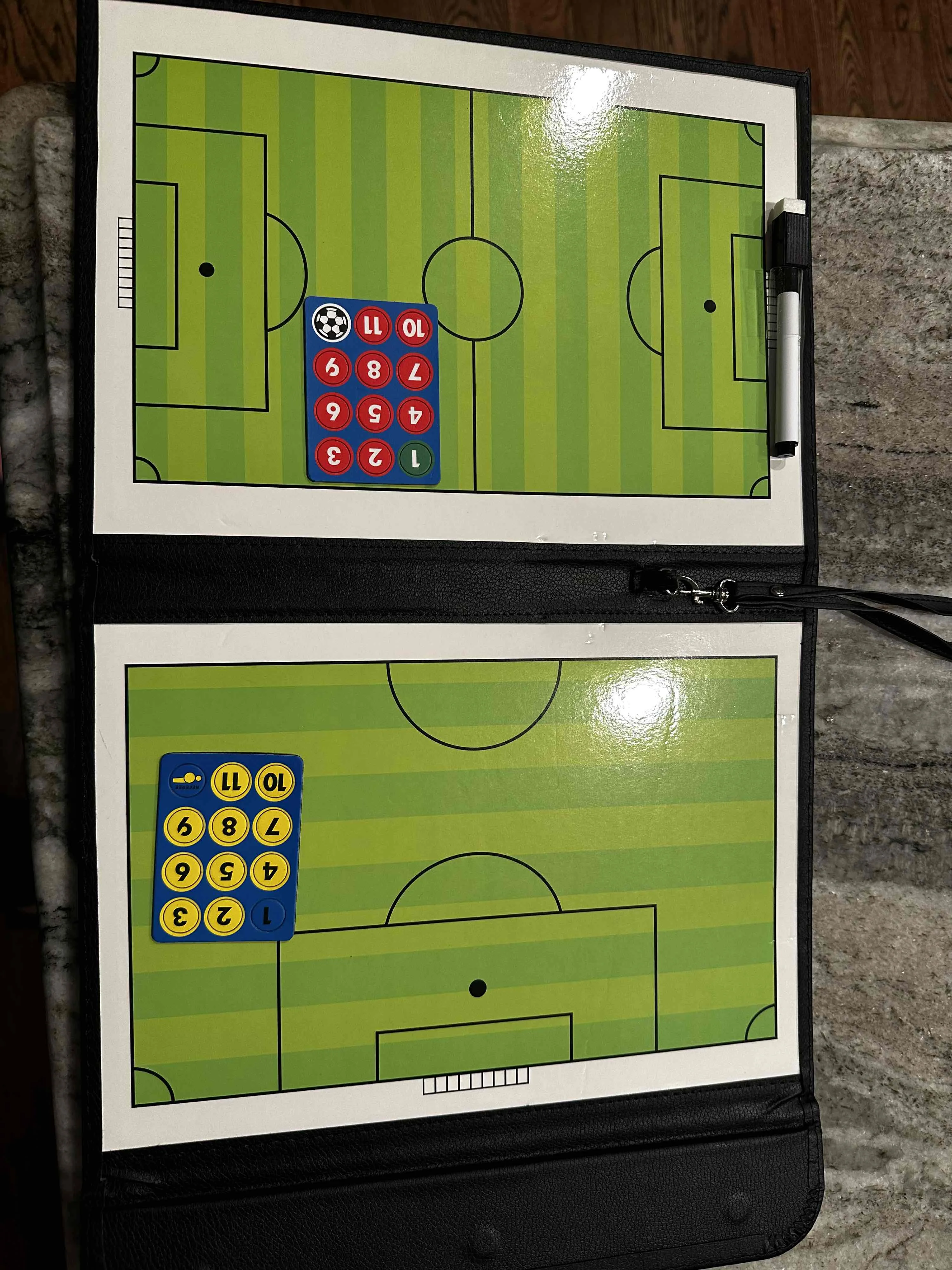 great design for soccer coaches talking with players on the bench.
